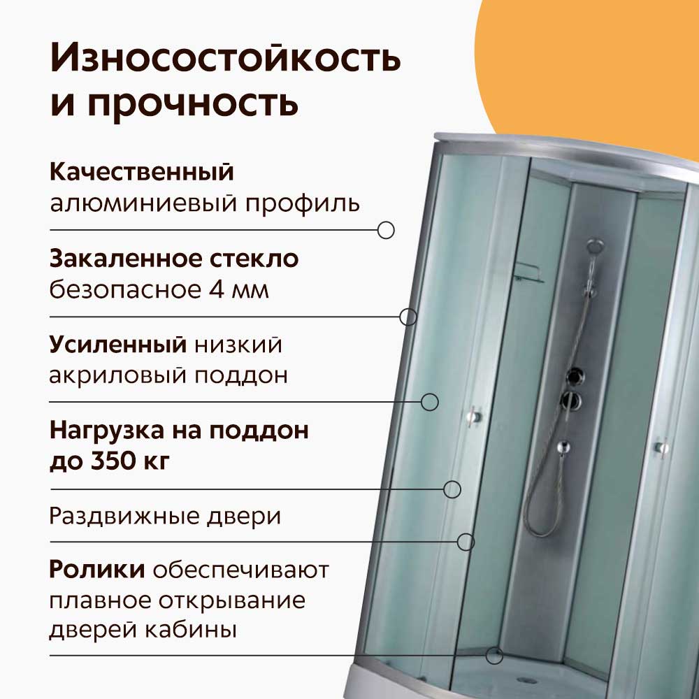 - Задние стенки кабины выполнены из белого стекла, а передние – из матового стекла