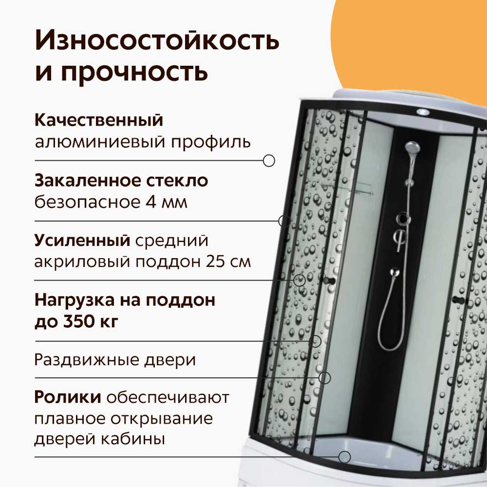 - Задние стенки кабины выполнены из белого стекла, а передние – из прозрачного стекла с рисунком «капли»