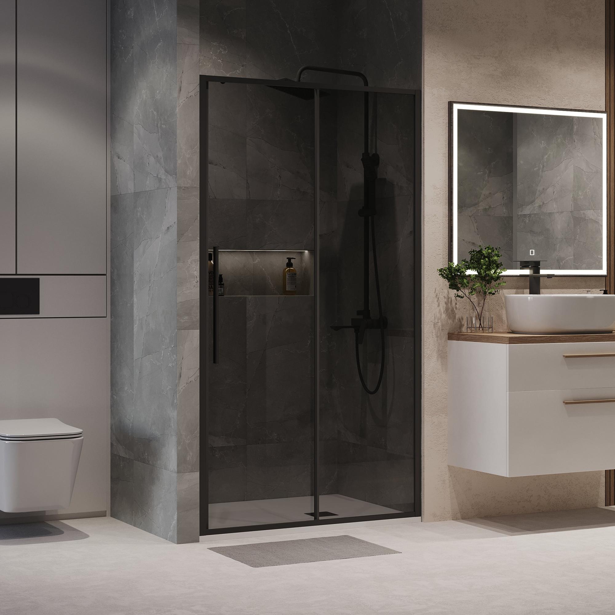 Душевое ограждение 130х195, 1 раз-ая дверь, профиль ЧЕРНЫЙ, стекло ТОНИРОВАННОЕ 6мм NG-85-13TB