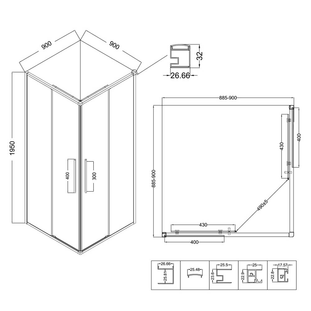 - Размеры (ДхШхВ): 90x90x195 см