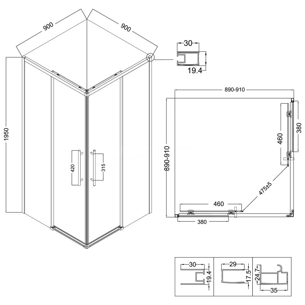 - Размеры (ДхШхВ): 90x90x195 см