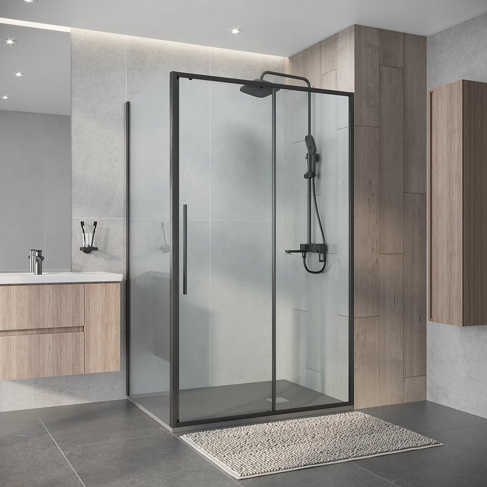 Душевое ограждение 100х90х195 без поддона проф ГРАФИТ стекло (6мм) ПРОЗРАЧ NG-34-10AGR + A90GR-34