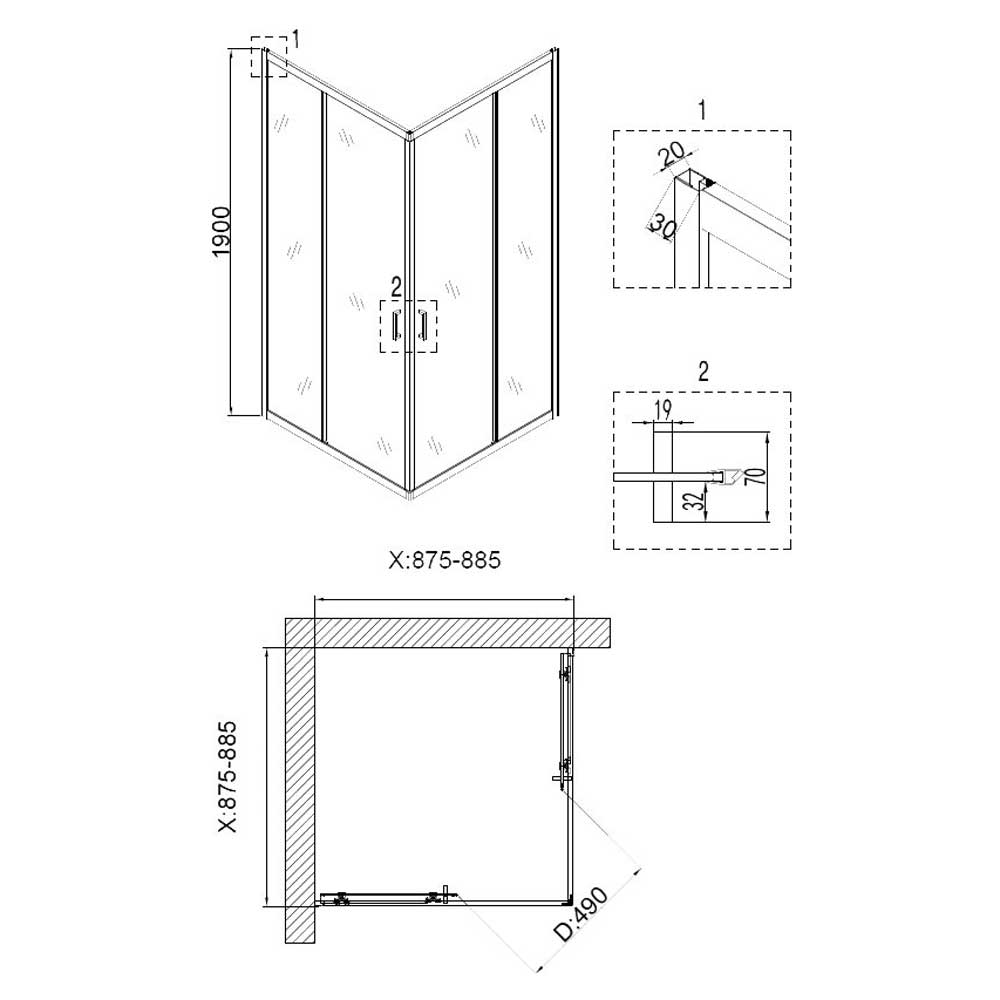 - Размеры (ДхШхВ): 90x90x195 см