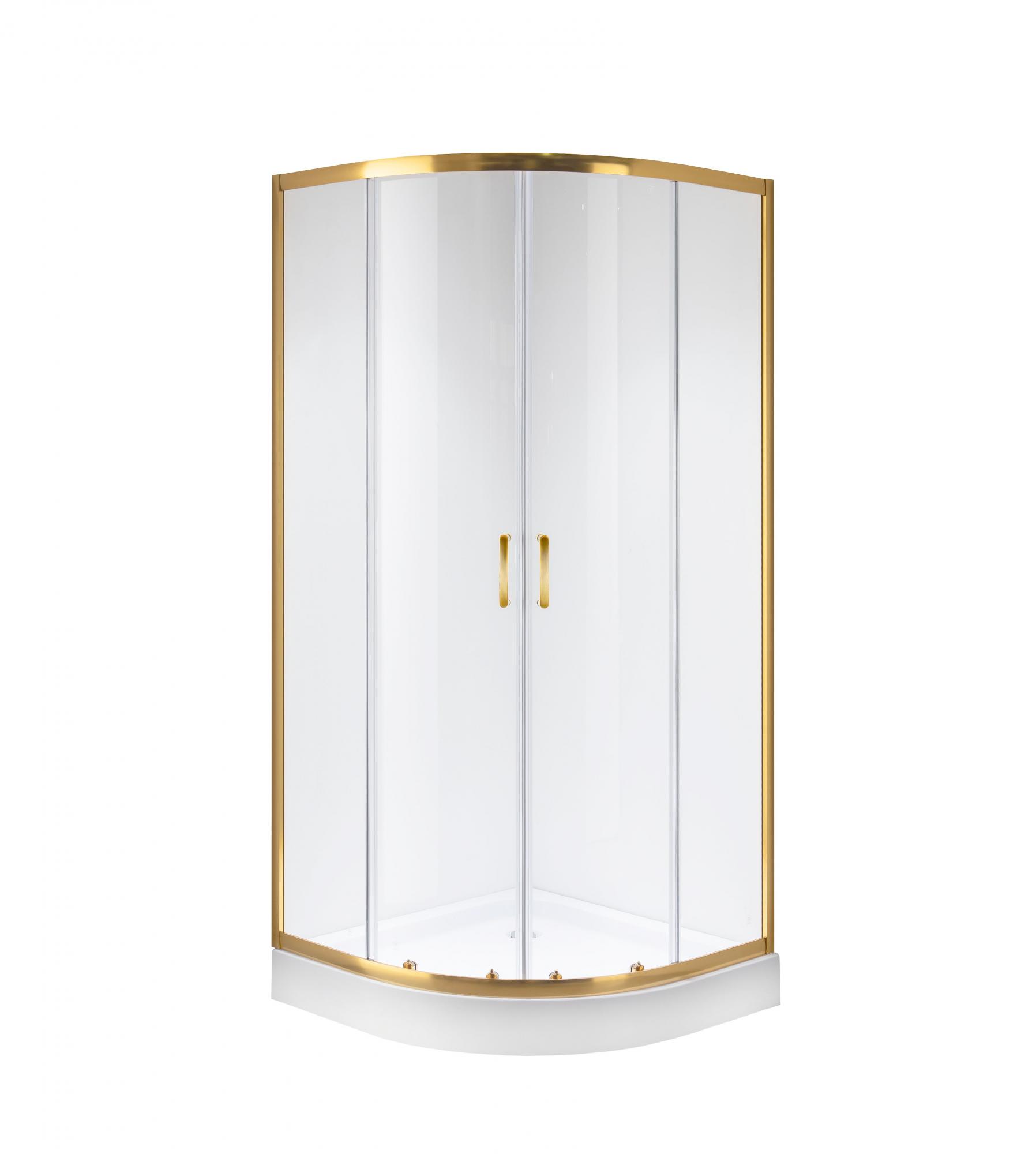 Душевой уголок 90х90х195 ПОЛУКР без поддона профиль ЗОЛТО стекло (6мм) ПРОЗРАЧНОЕ NG-6406-08GOLD