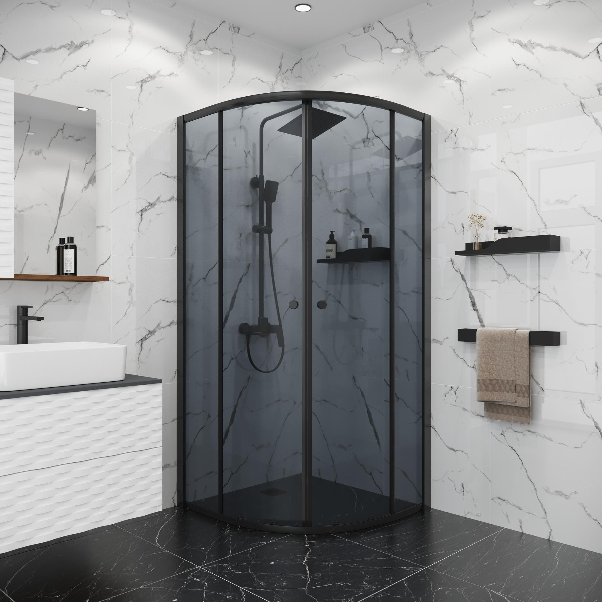 Душевой уголок 90х90х190 ПОЛУКР без поддона профиль ЧЕРН МАТ стекло (4мм) ТОНИРОВАННОЕ NG-1007-14T