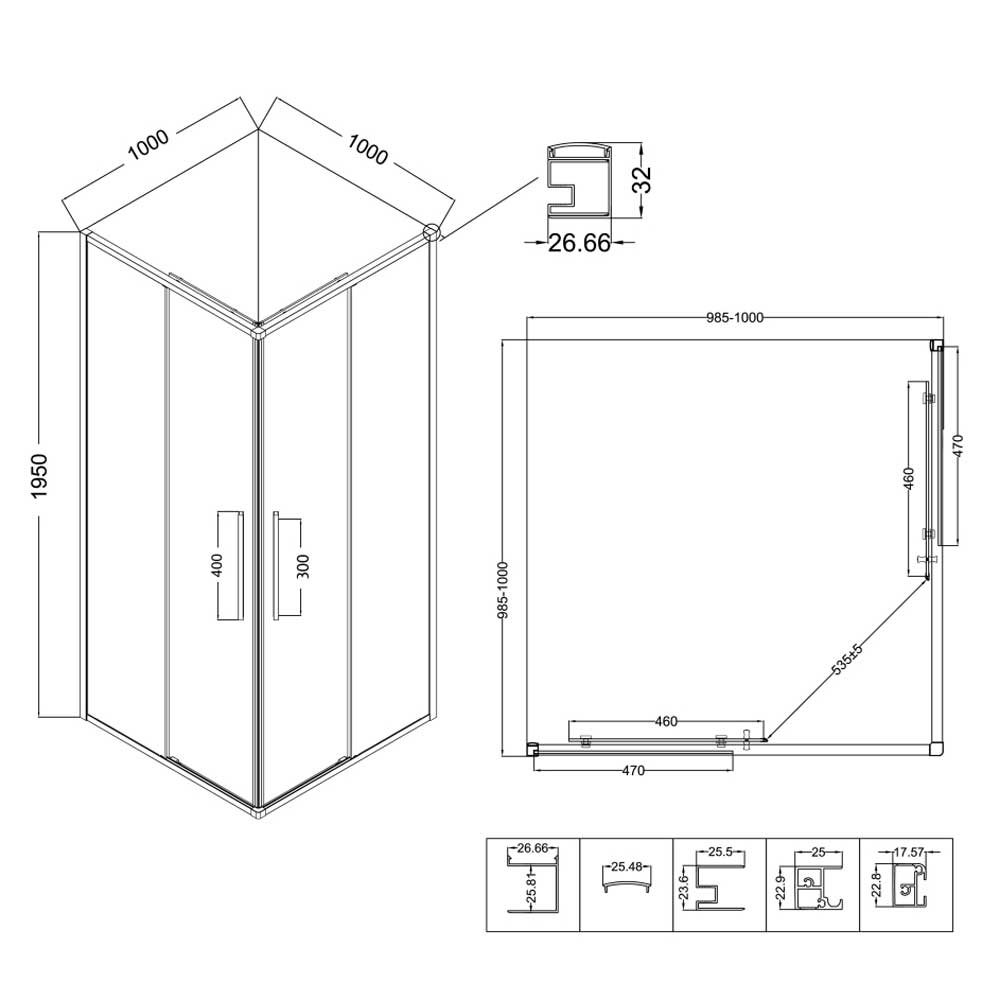 - Размеры (ДхШхВ): 100x100x195 см