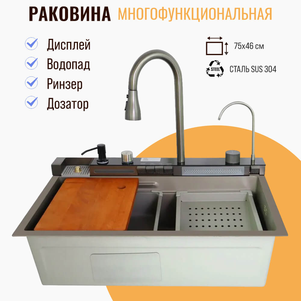 - Мойка выполнена из пищевой нержавеющей стали SUS 304