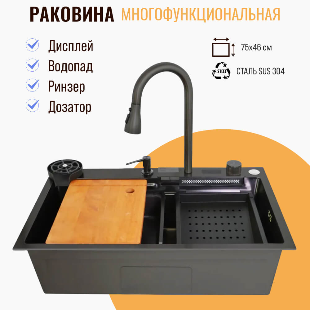 - Смеситель имеет 4 варианта подачи воды - классическая струя, под давлением, сеточка и водопад