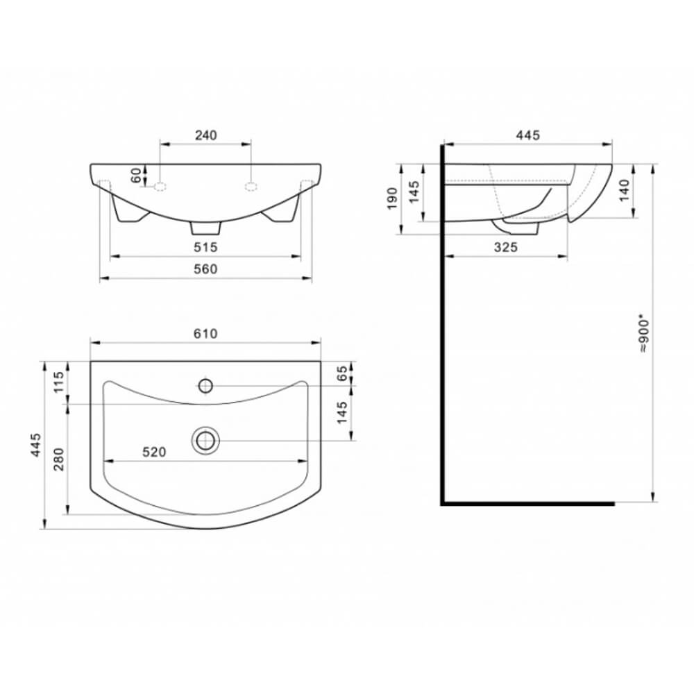 - Размеры (ШхГхВ): 61x44,5x19 см