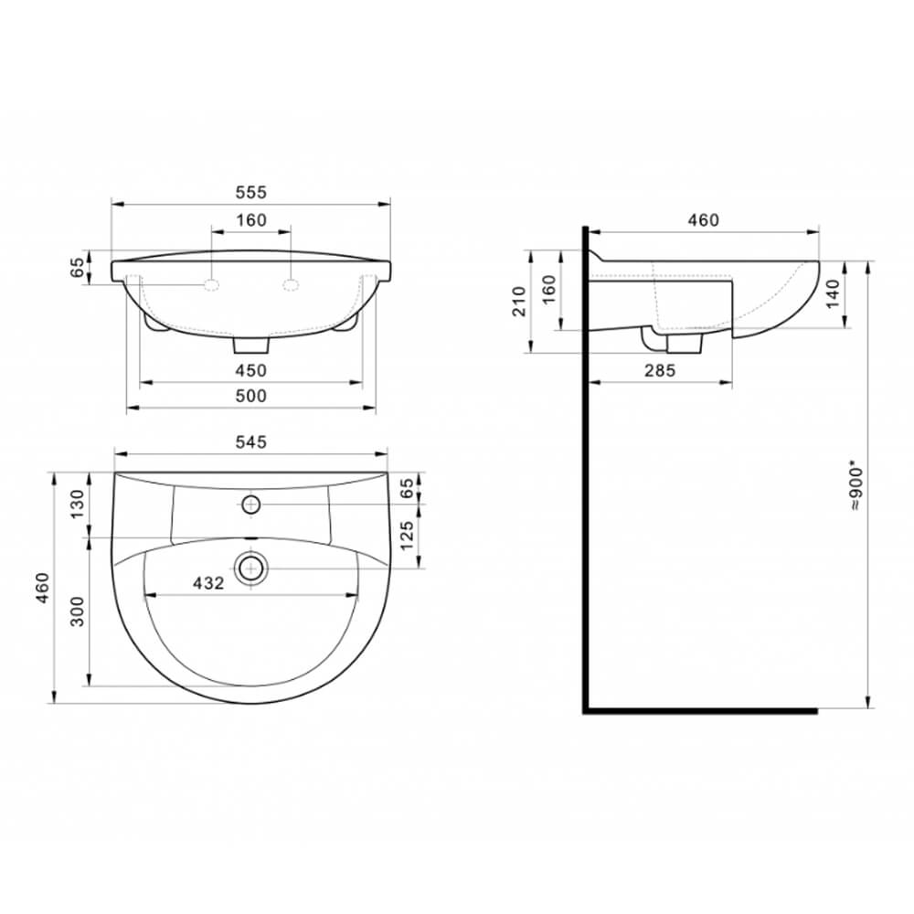 - Отверстие под смеситель по центру
