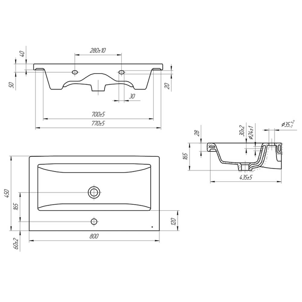 - Размеры (ШхГхВ): 80x45x16,5 см