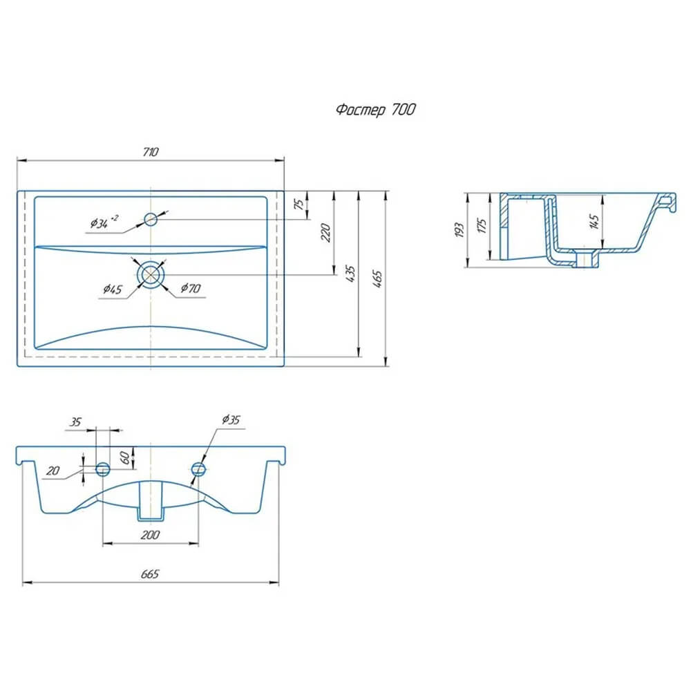- Размеры (ШхГхВ): 71x46,5x19,3 см