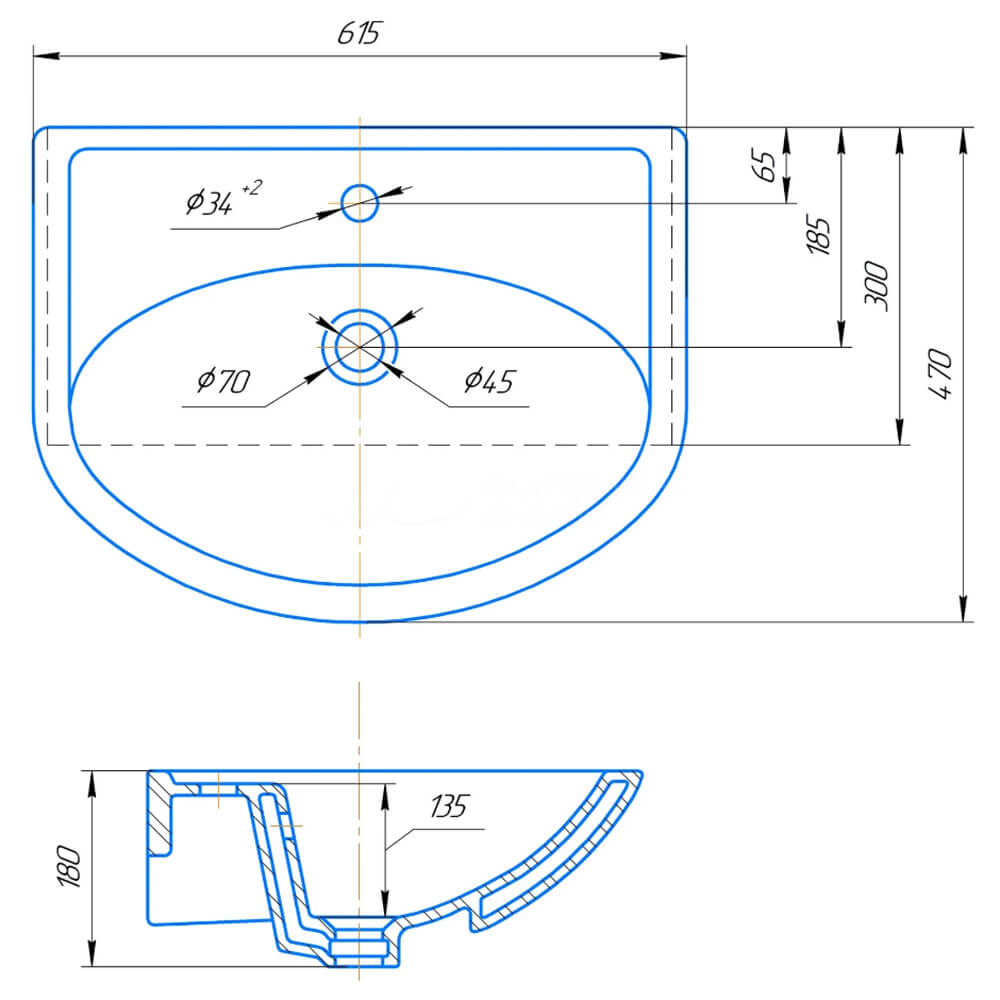 - Размеры (ШхГхВ): 61,5x47x18 см