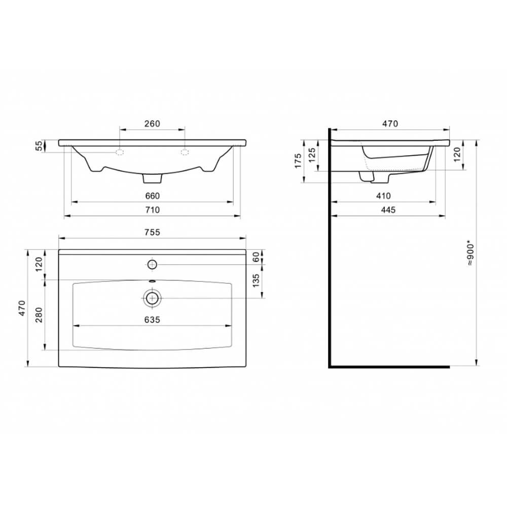 - Размеры (ШхГхВ): 75,5x47x17,5 см