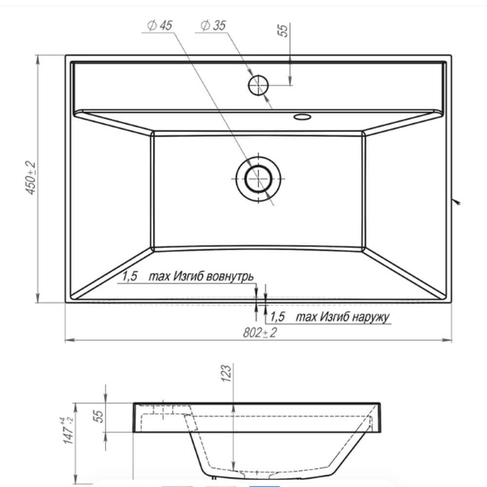 - Размеры (ШхГхВ): 80,2x45x14,7 см