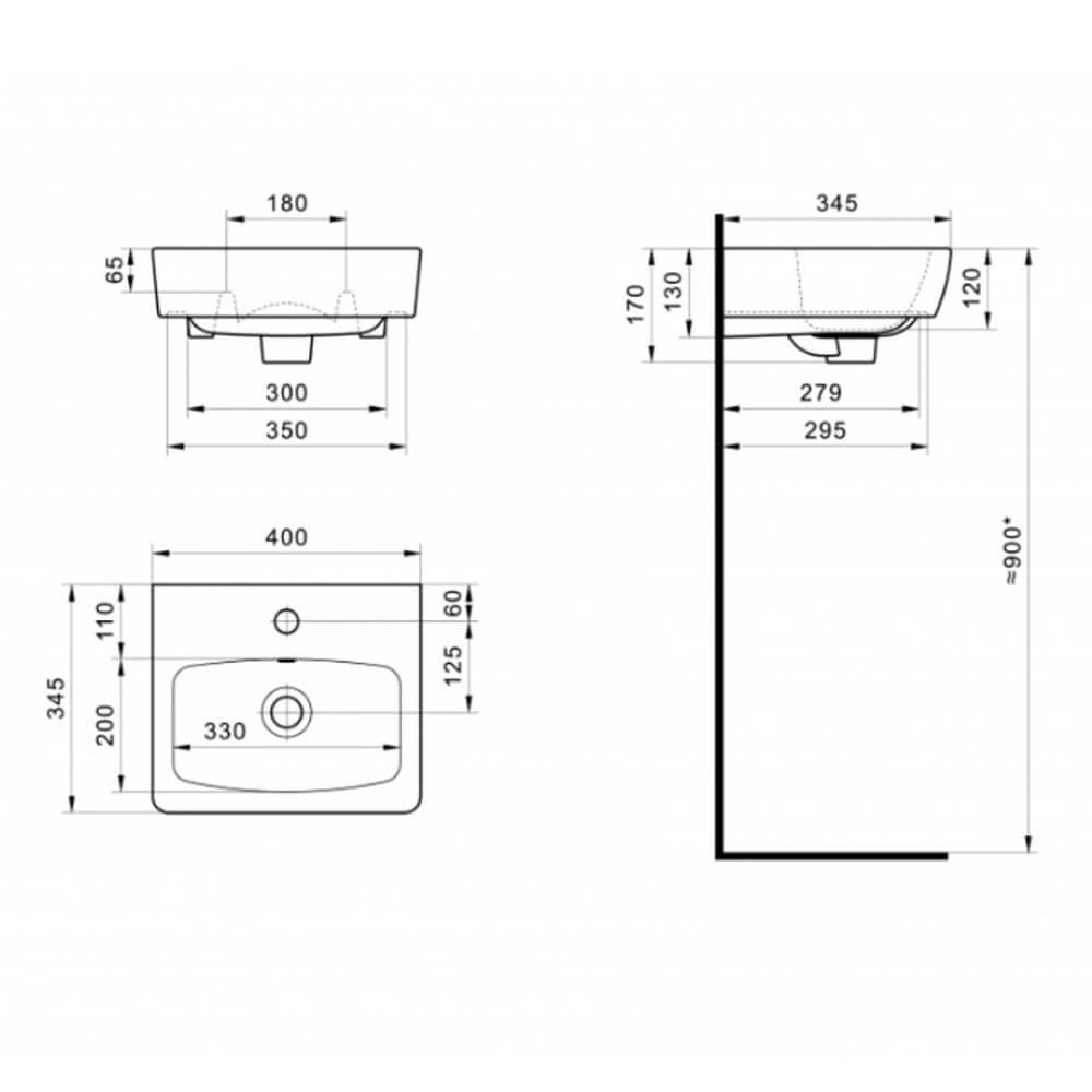 - Отверстие под смеситель по центру
