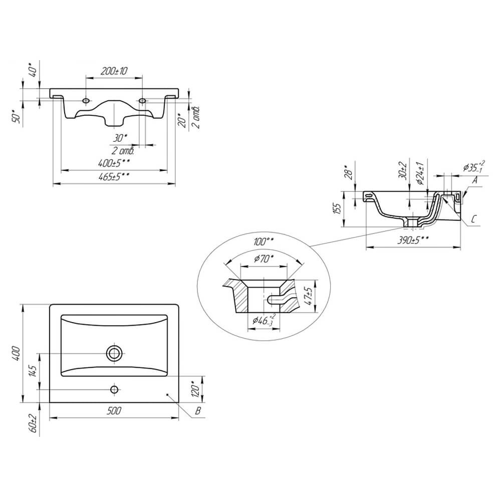 Расположение отверстия под смеситель
