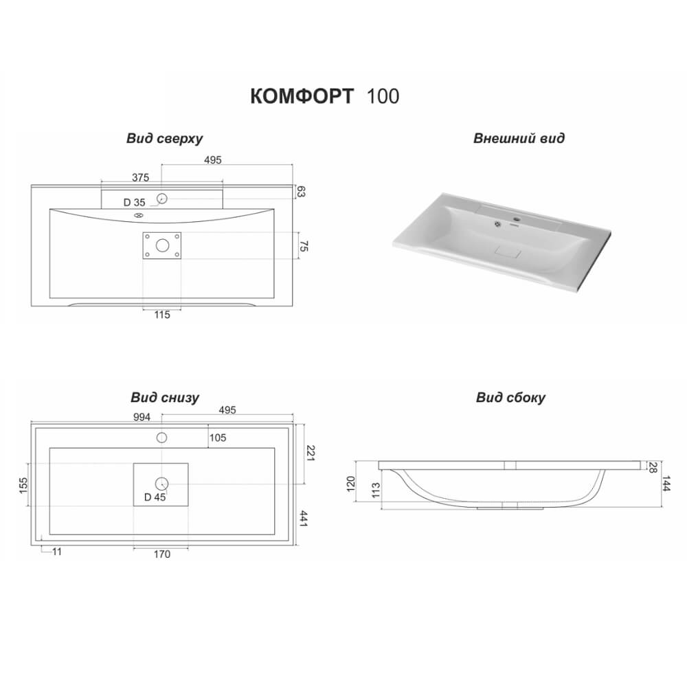 - Размеры (ШхГхВ): 99,4x44,1x14,4 см