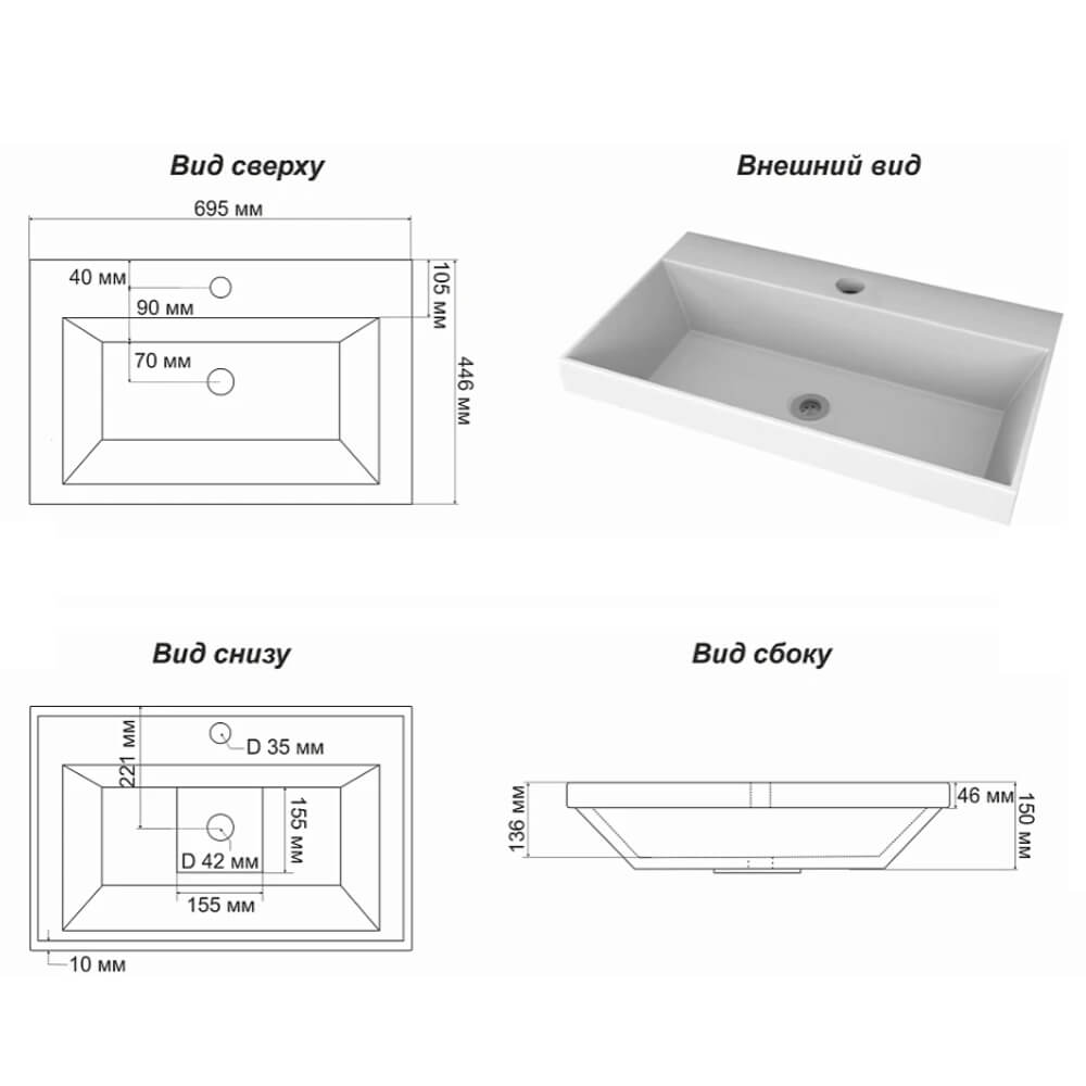 - Материал: литьевой мрамор