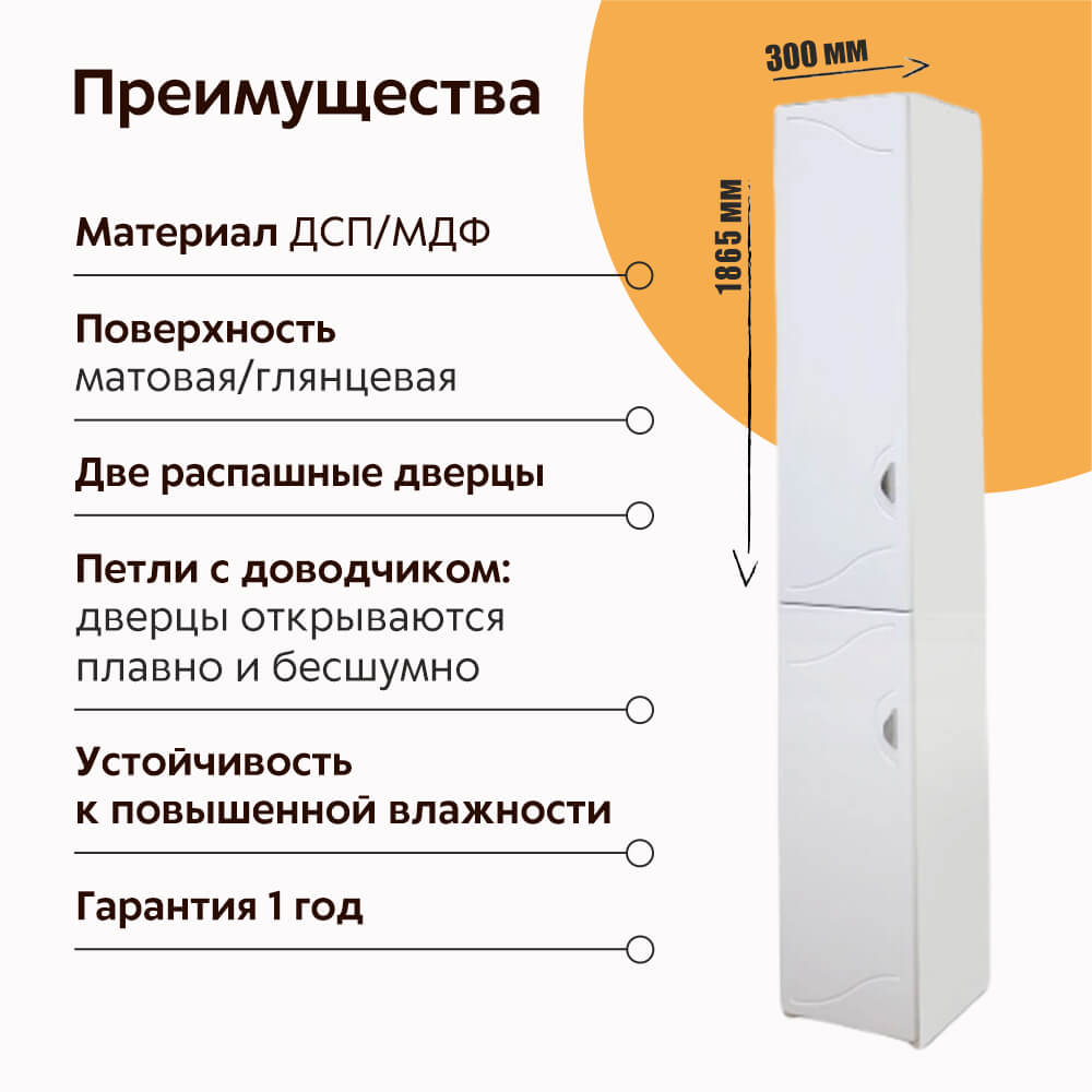- Фасад пенала из МДФ облицован глянцевой пленкой ПВХ