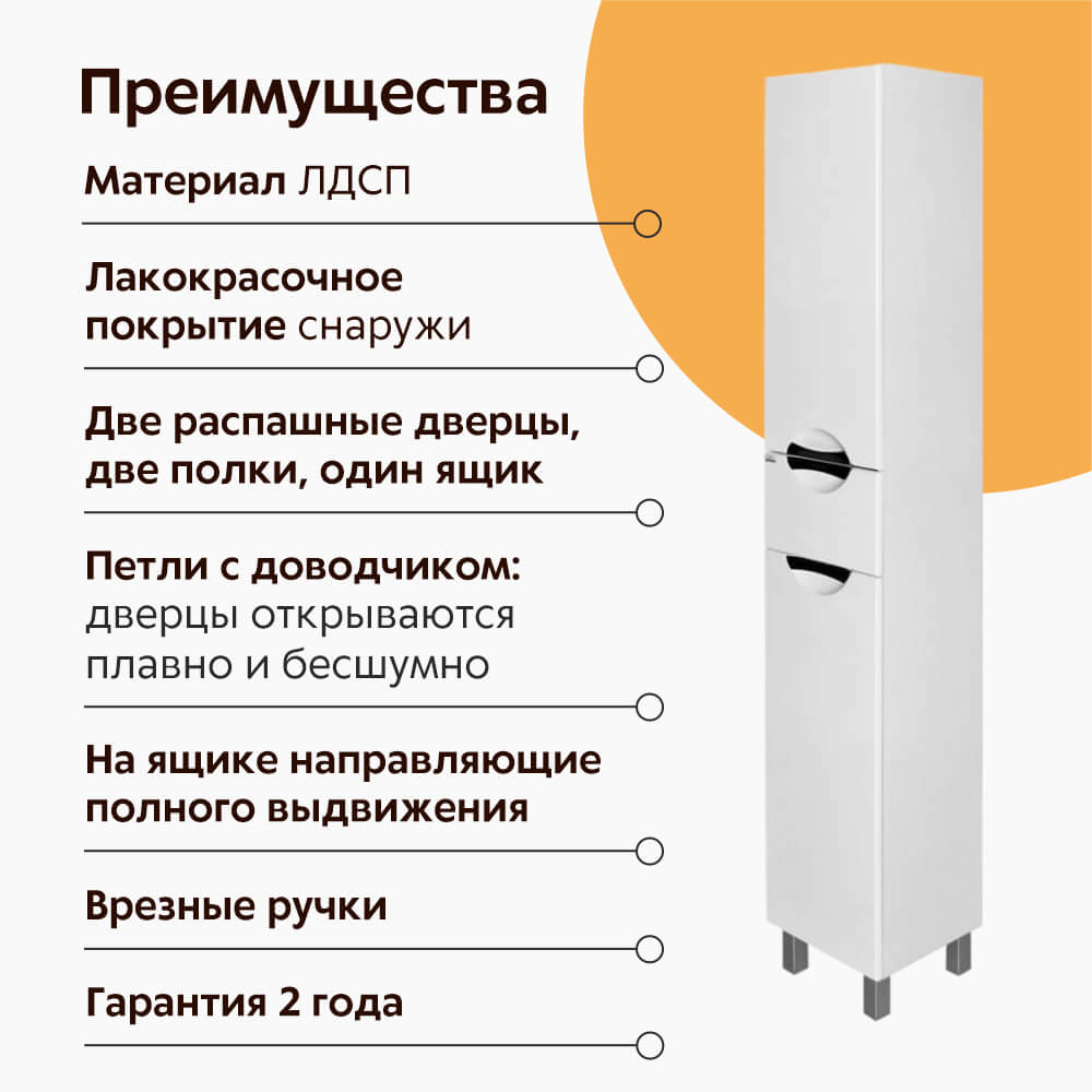 - Корпус и фасад изготовлены из влагостойкой ЛДСП с лакокрасочным покрытием снаружи