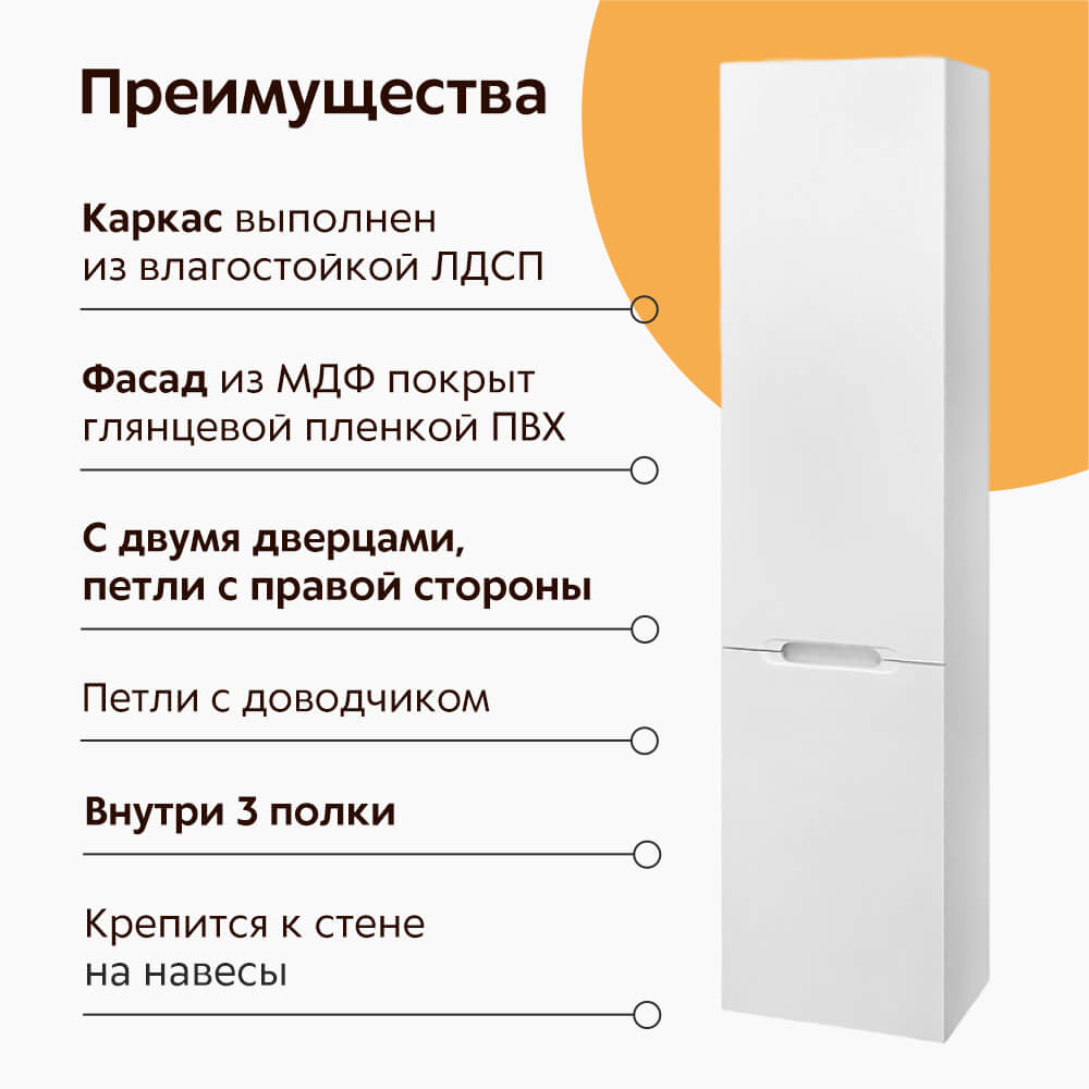 - Фасад пенала из МДФ облицован глянцевой пленкой ПВХ