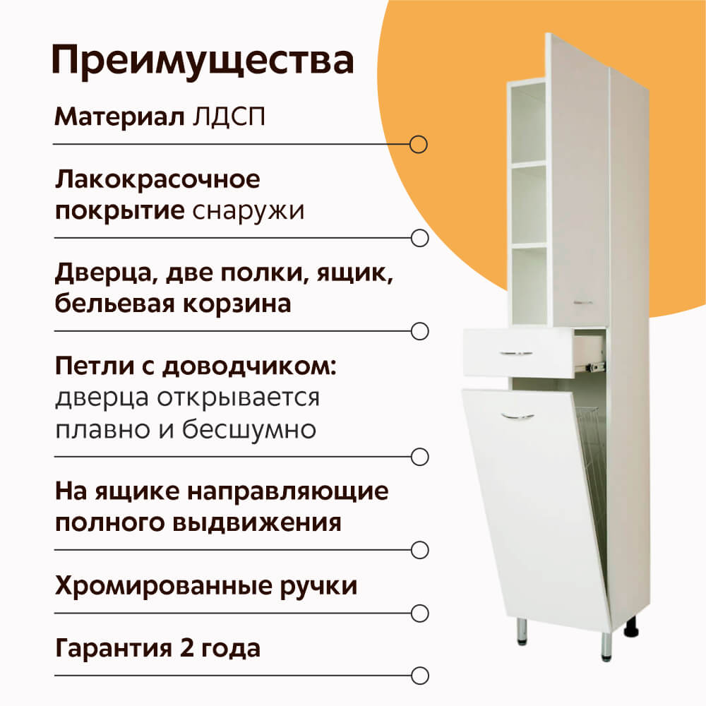 - Корпус и фасад изготовлены из влагостойкой ЛДСП с лакокрасочным покрытием снаружи