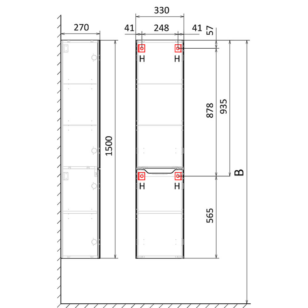 - Размеры (ШхГхВ): 33x27x150 см