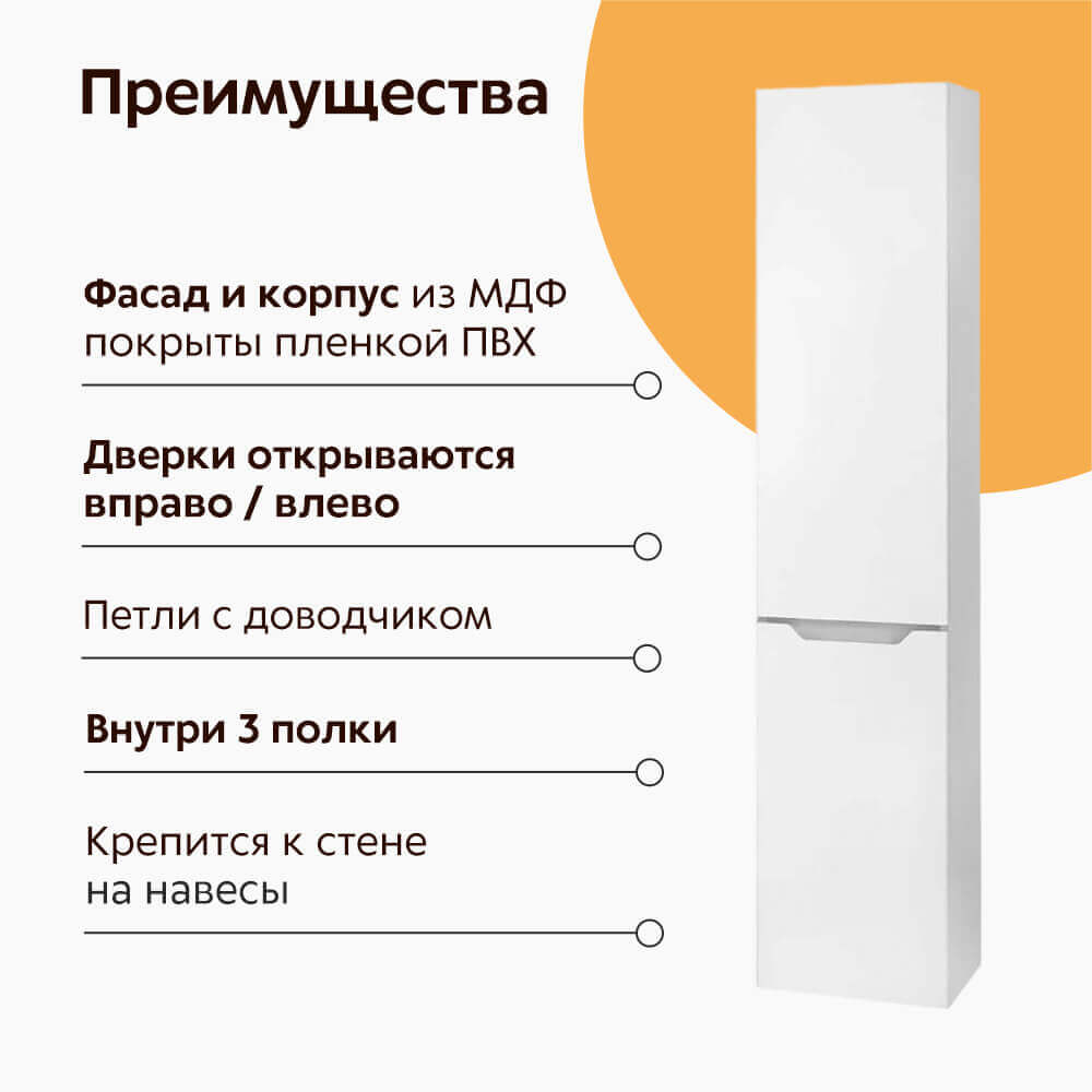- Фасады пенала и корпус из МДФ покрыты глянцевой пленкой ПВХ