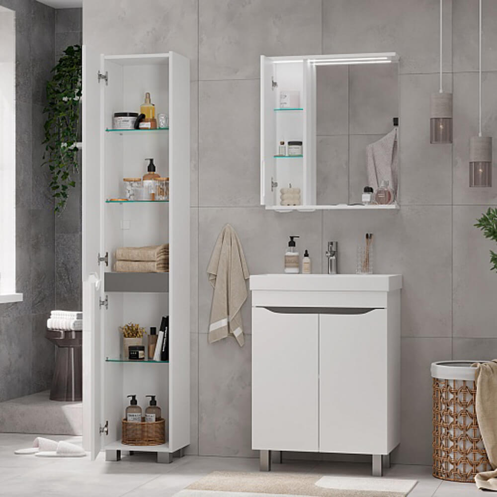 - Дверцы пенала открываются при помощи интегрированных ручек