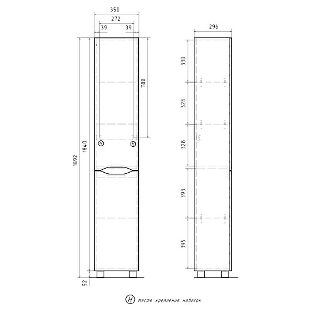 - Фасады пенала изготовлены из МДФ и облицованы глянцевой пленкой ПВХ