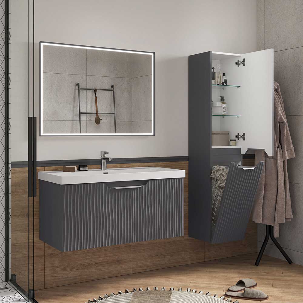 - Фасады пенала оформлены декоративной волнообразной фрезеровкой