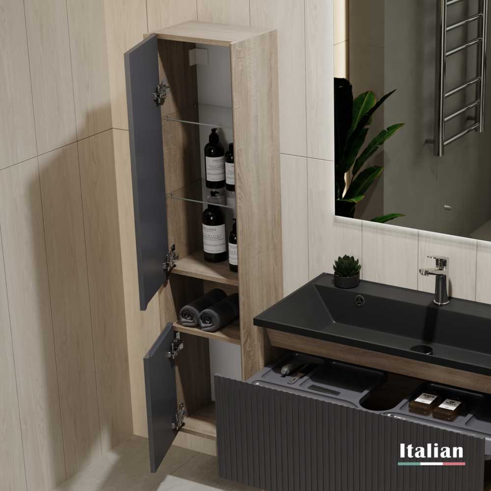 - Корпус тумбы изготовлен из влагостойкой ЛДСП, фасад – из МДФ