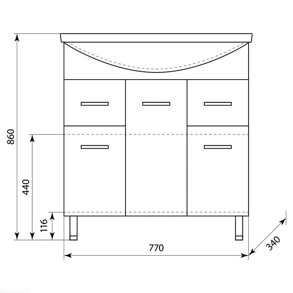 - Размеры (ШхГхВ): 77x34x86 см