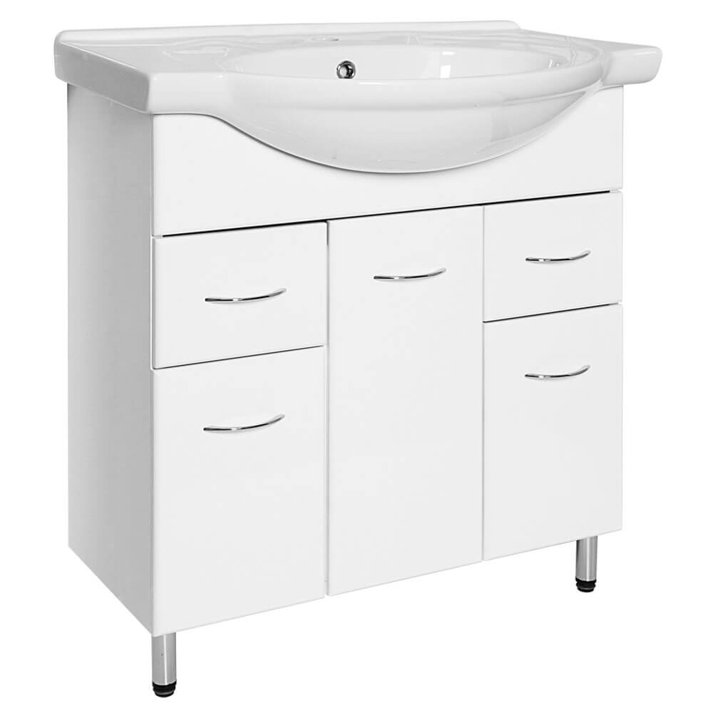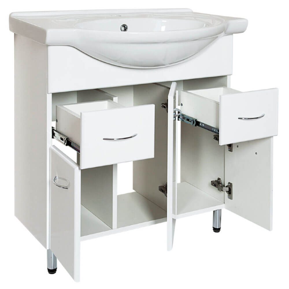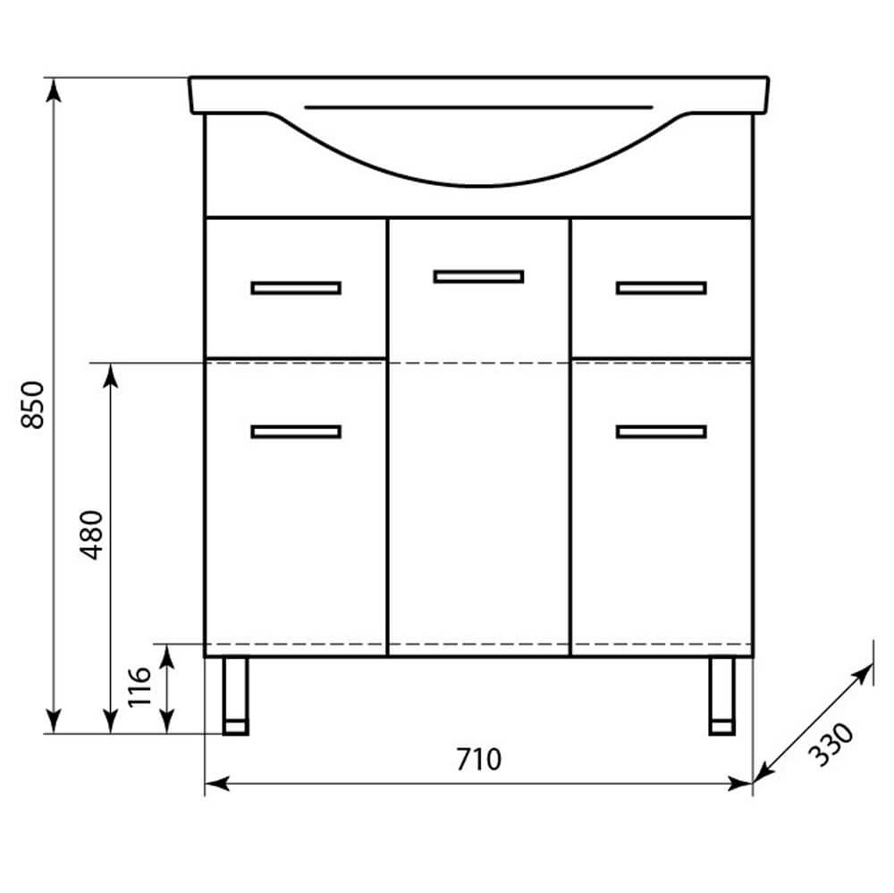 - Тумба оснащена 3 дверками и 2 выдвижными ящиками с доводчиками