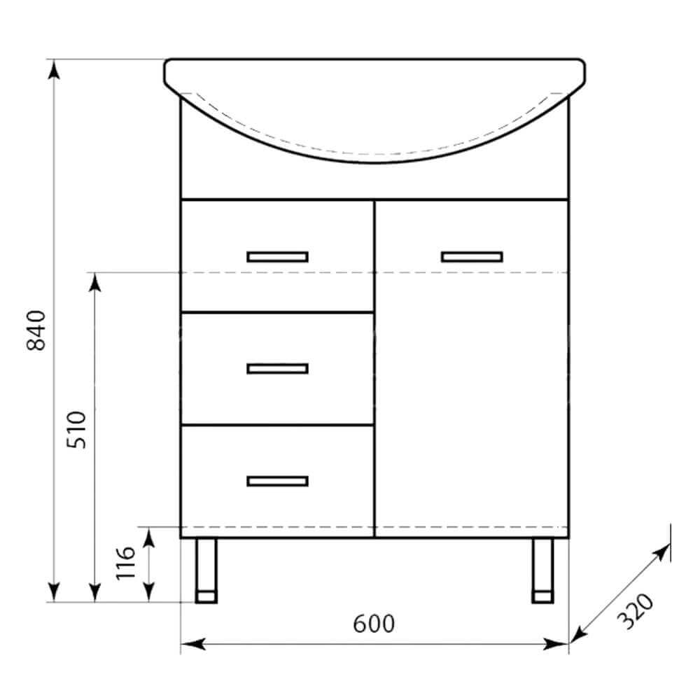 - Размеры (ШхГхВ): 60x32x84 см