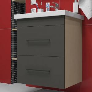 - Ширина тумбы без раковины – 55,5 см, высота без раковины – 68 см, глубина – 42,6 см