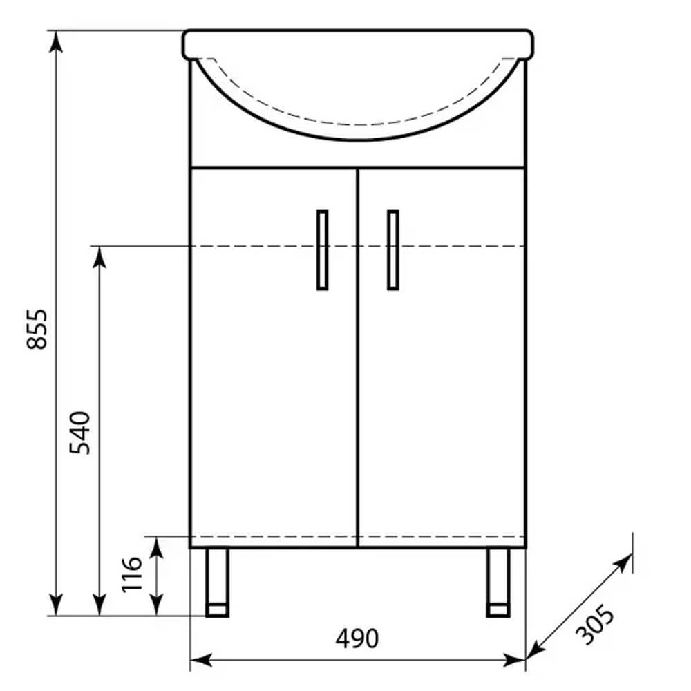 - Тумба оснащена 2 дверками и полкой