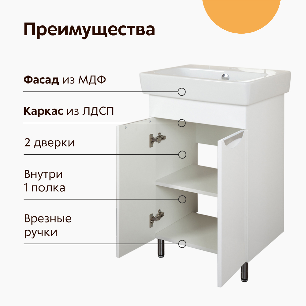 - Корпус: влагостойкая ЛДСП с лакокрасочным покрытием снаружи