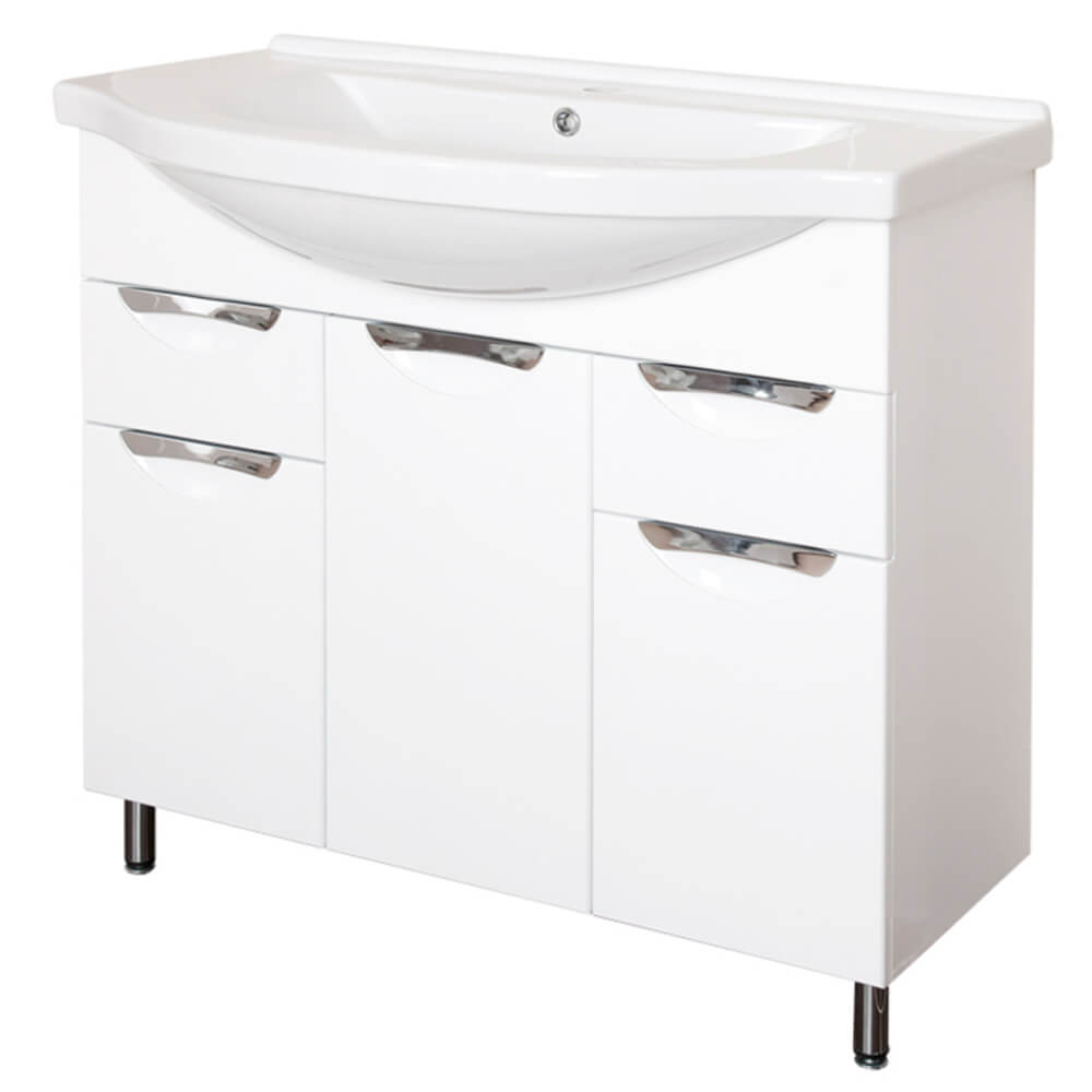 - Тумба оснащена 3 дверками и 2 выдвижными ящиками с доводчиками