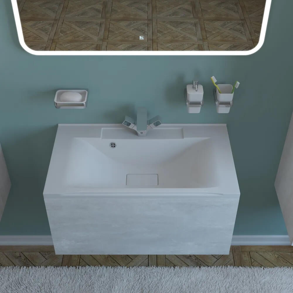 - Фасад и каркас изготовлены из МДФ 16 мм и ламинированы структурой декоративной штукатурки белого цвета