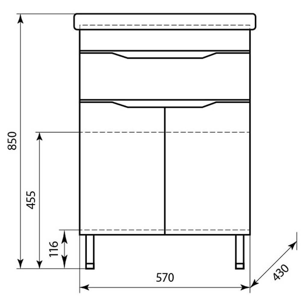 - Тумба оснащена 2 дверками и 2 выдвижными ящиками с доводчиками