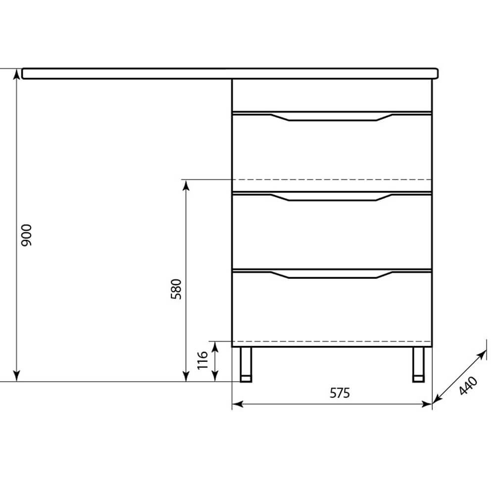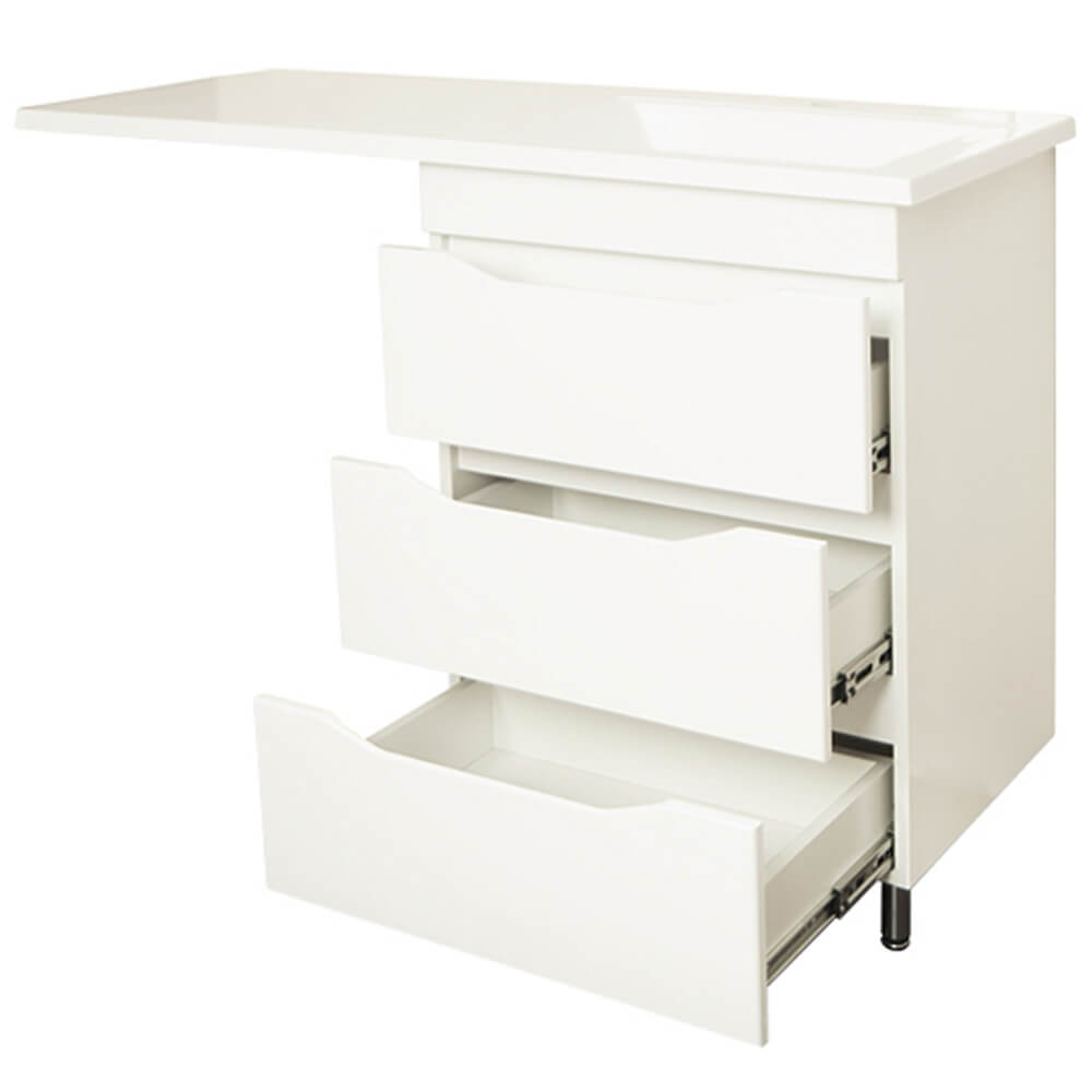- Тумба оснащена тремя выдвижными ящиками с доводчиками