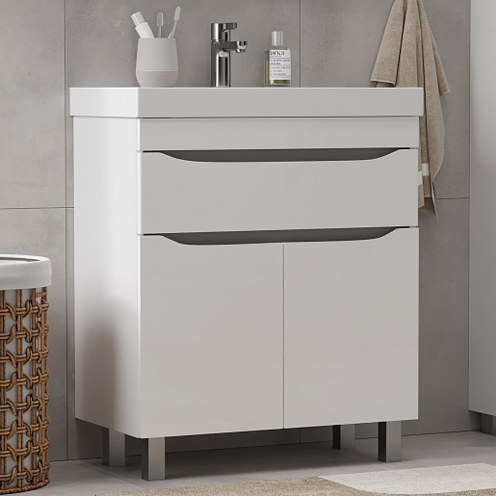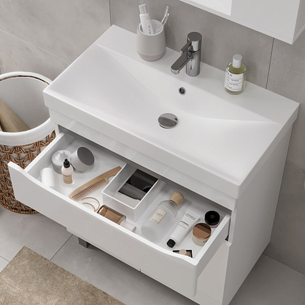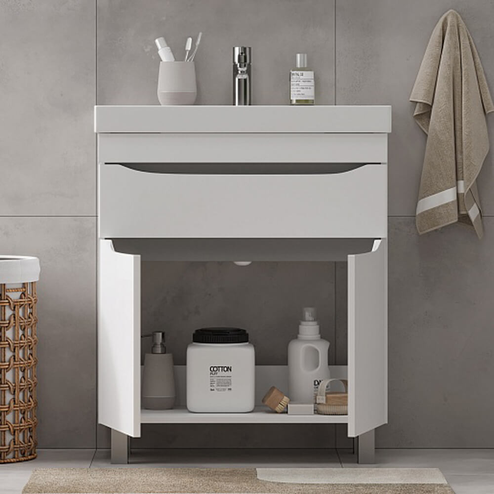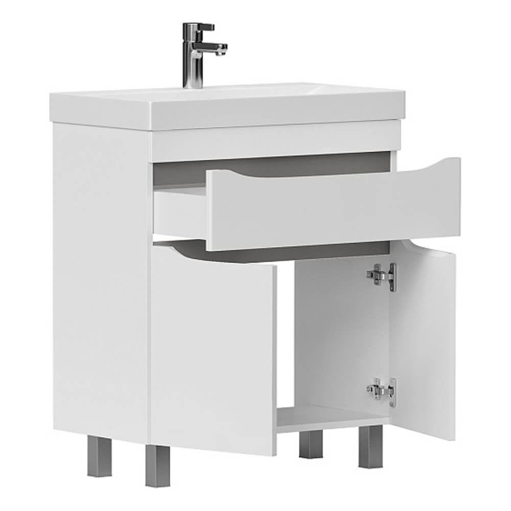 - Дверцы и ящик открываются при помощи интегрированных ручек