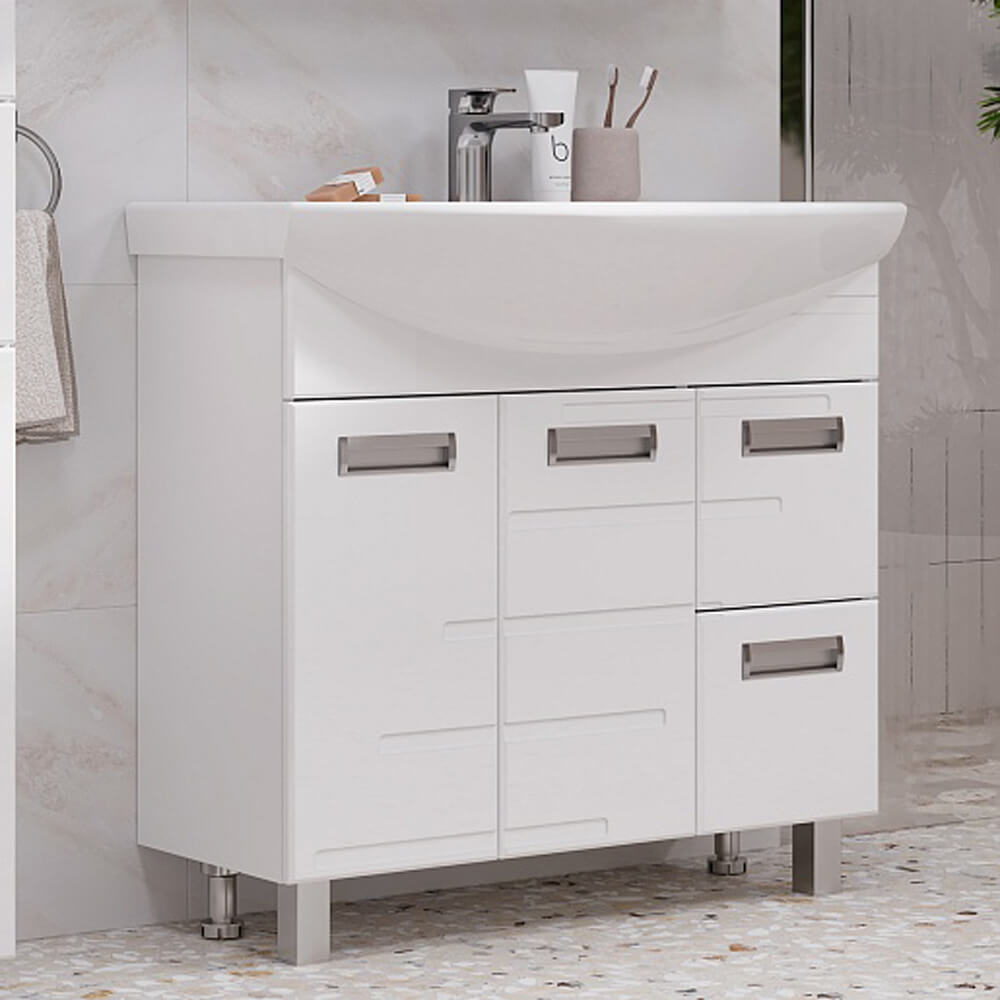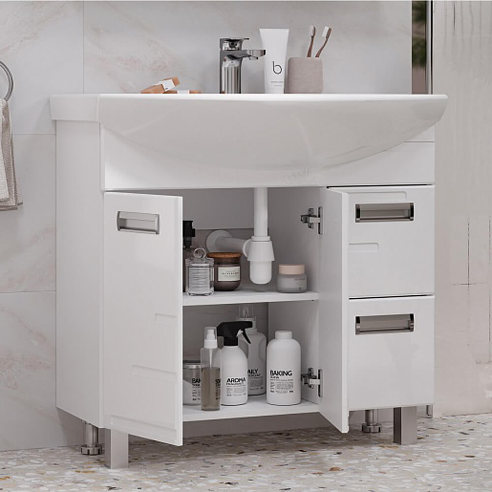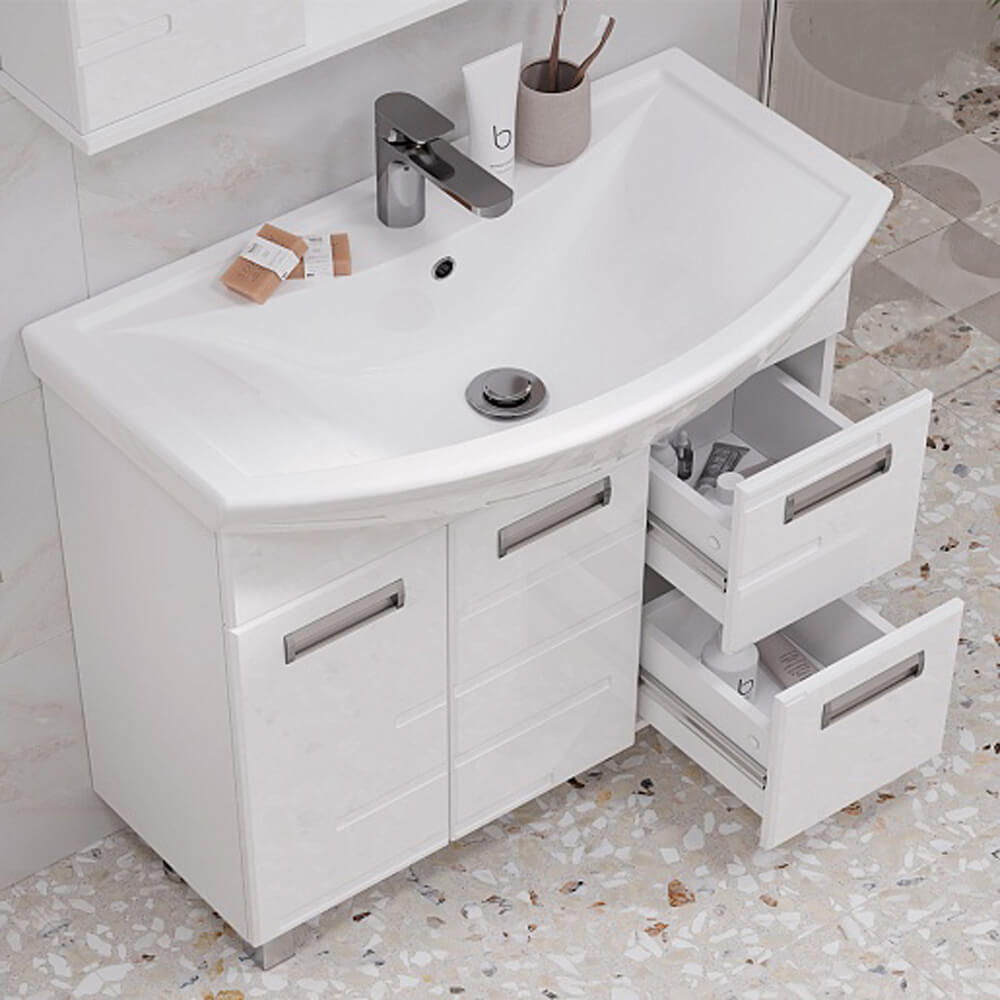 - Фасады тумбы из МДФ облицованы глянцевой пленкой ПВХ