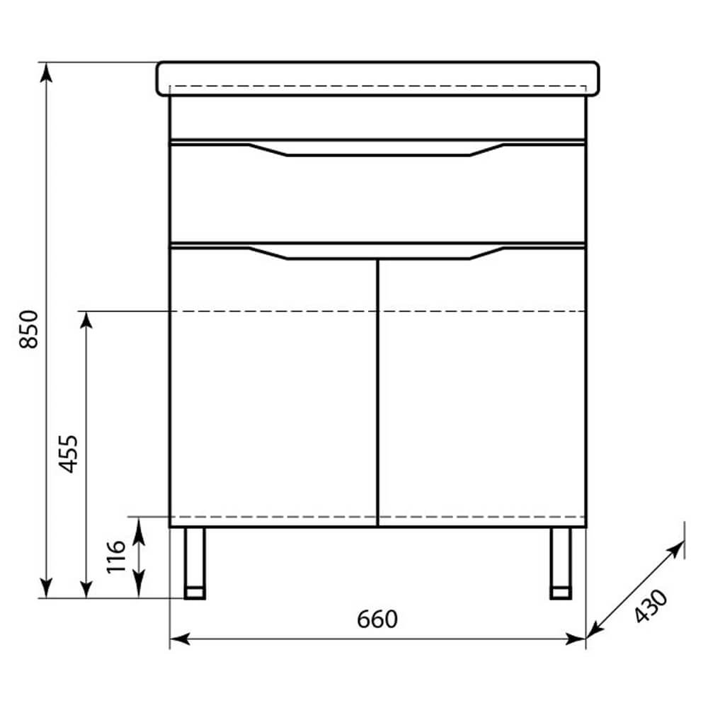 - Тумба оснащена 2 дверками и 2 выдвижными ящиками с доводчиками