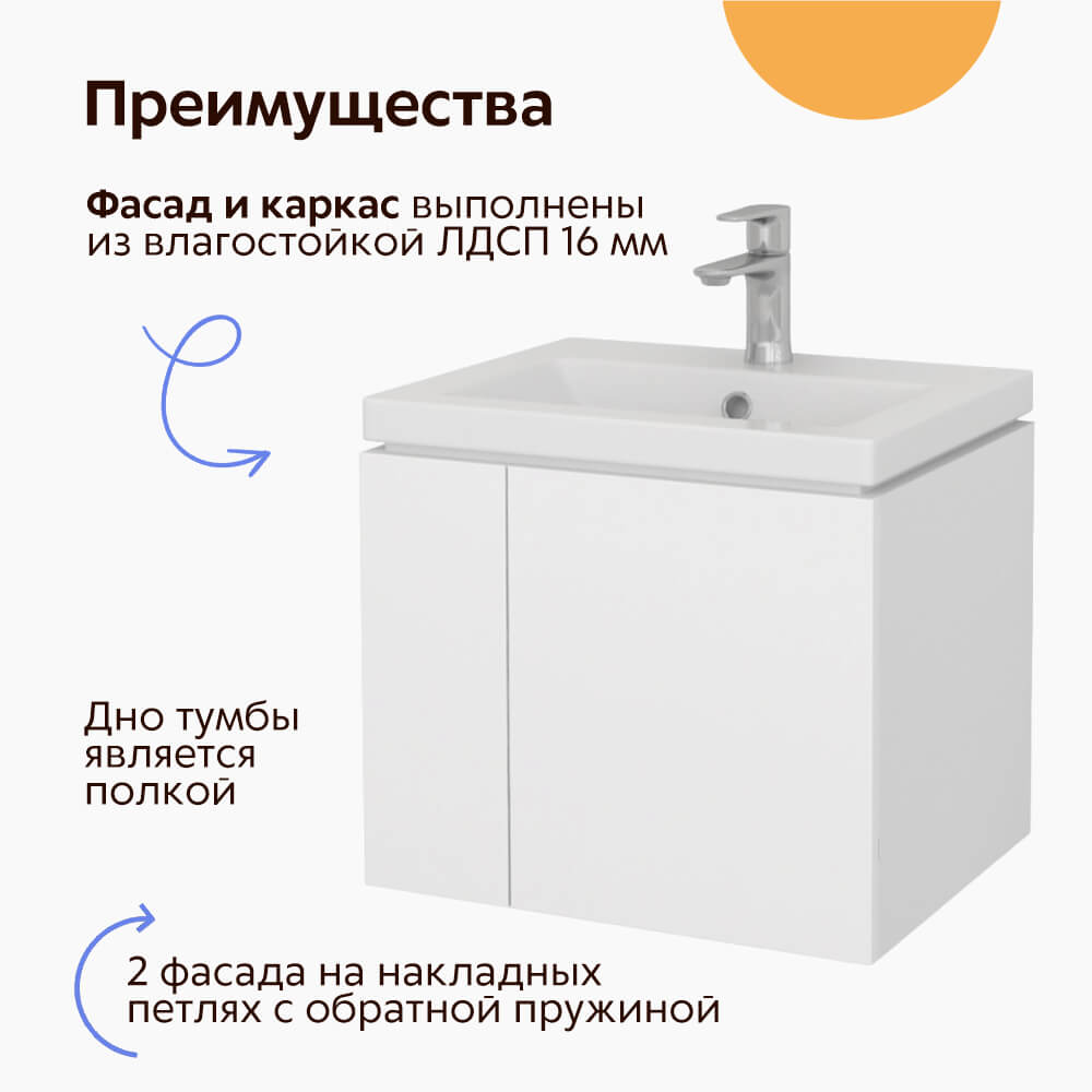 - Фасады и корпус изготовлены из белой матовой влагостойкой ЛДСП 16 мм