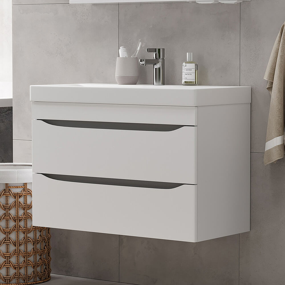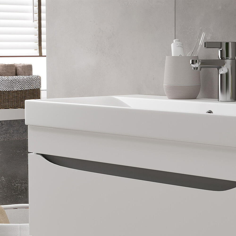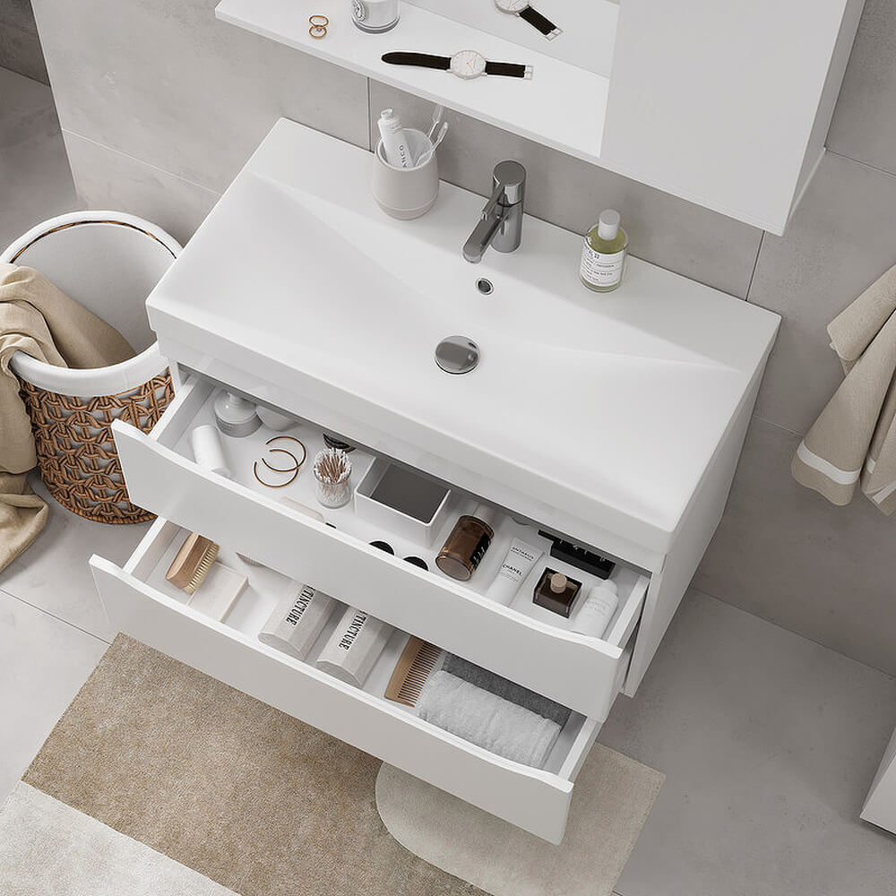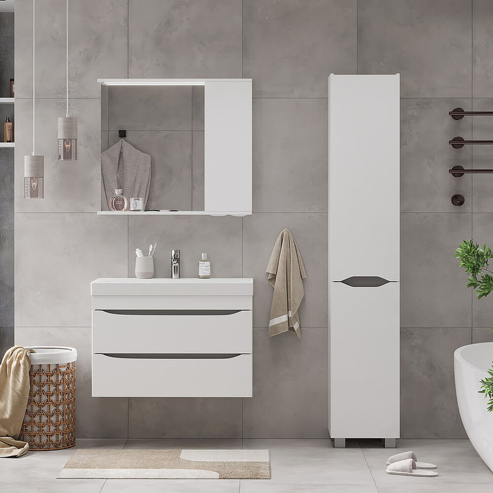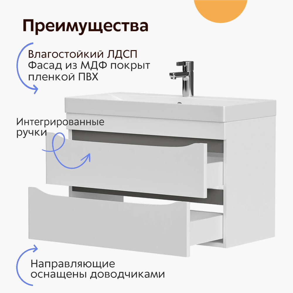 - Фасады тумбы из МДФ облицованы глянцевой пленкой ПВХ