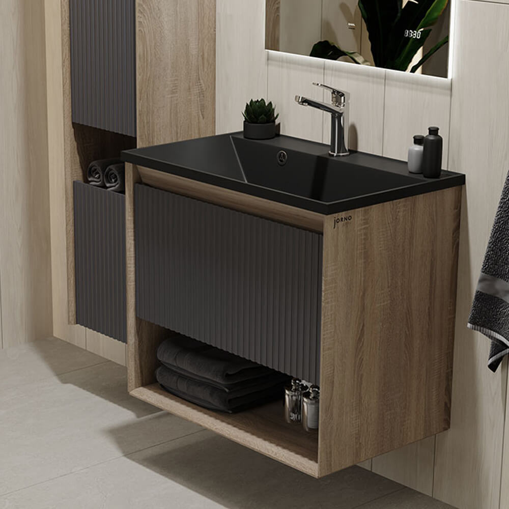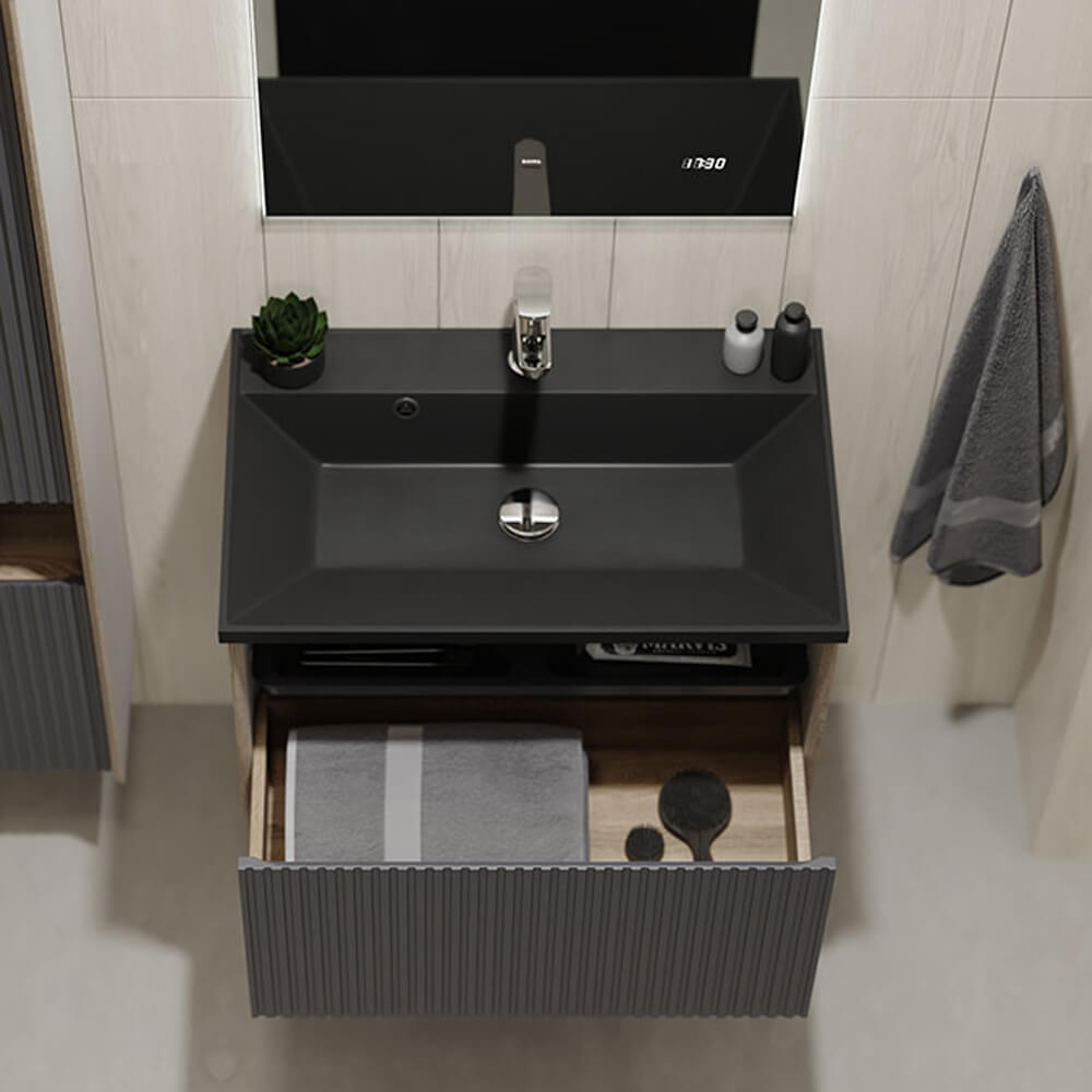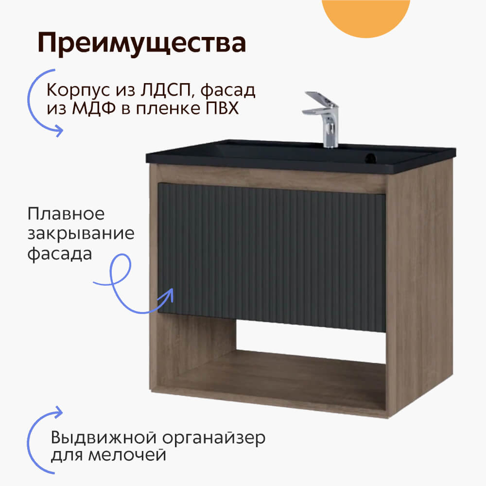 - Ширина тумбы без раковины – 68,6 см, высота без раковины – 60 см, глубина – 44,3 см