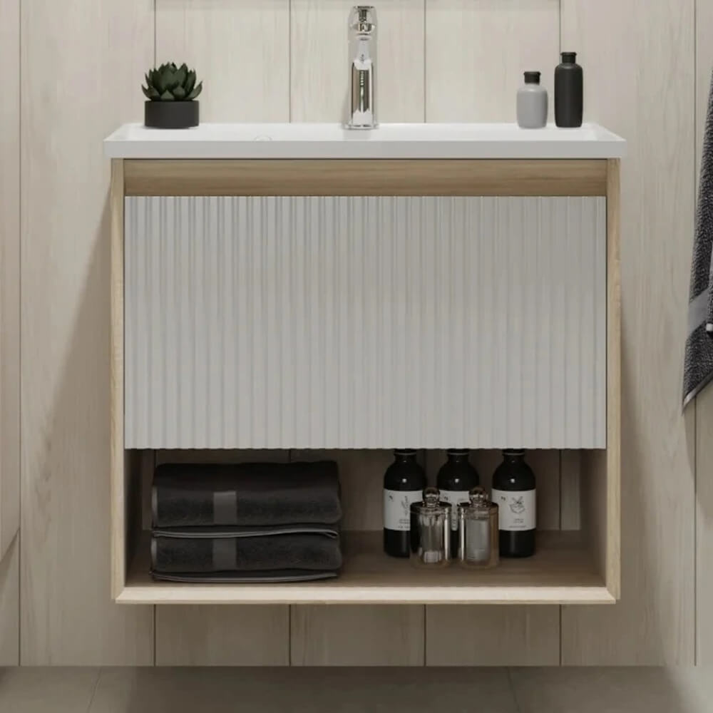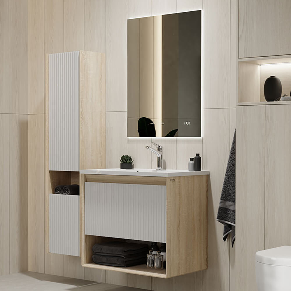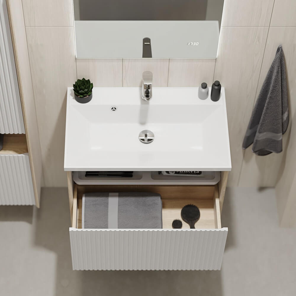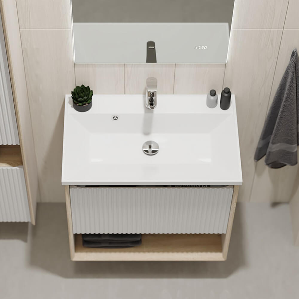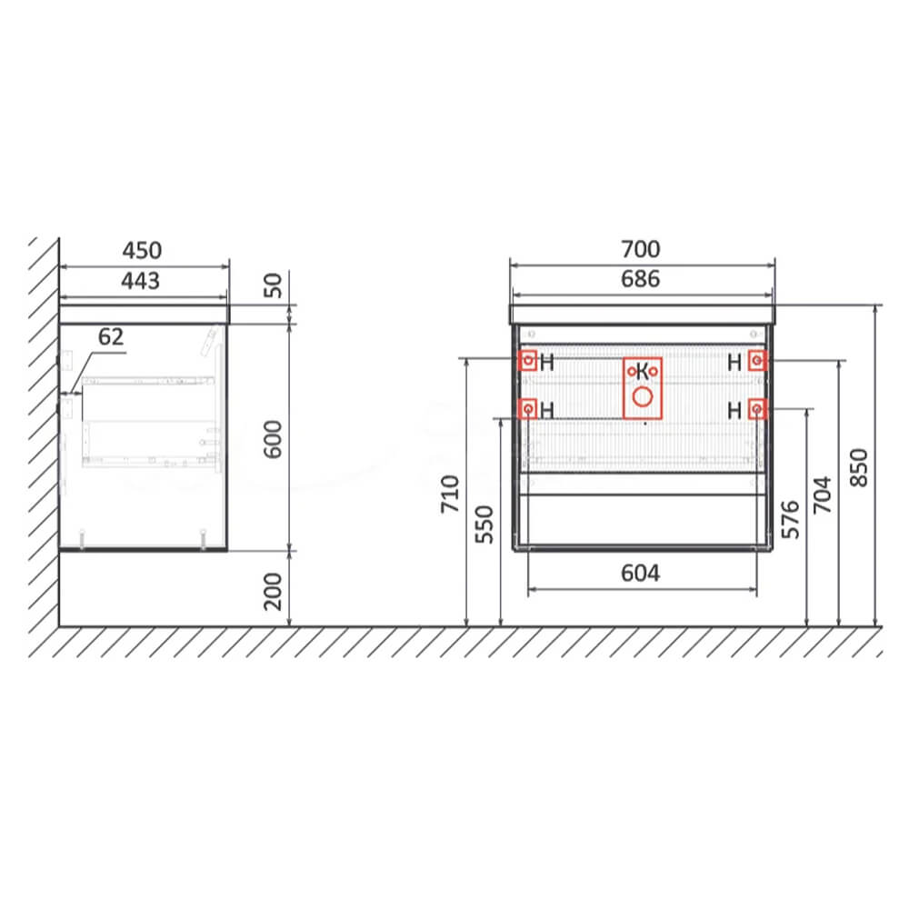 - Ширина тумбы без раковины – 68,6 см, высота без раковины – 60 см, глубина – 44,3 см